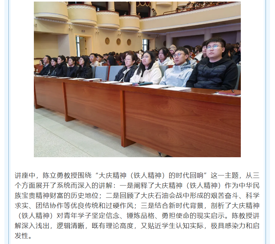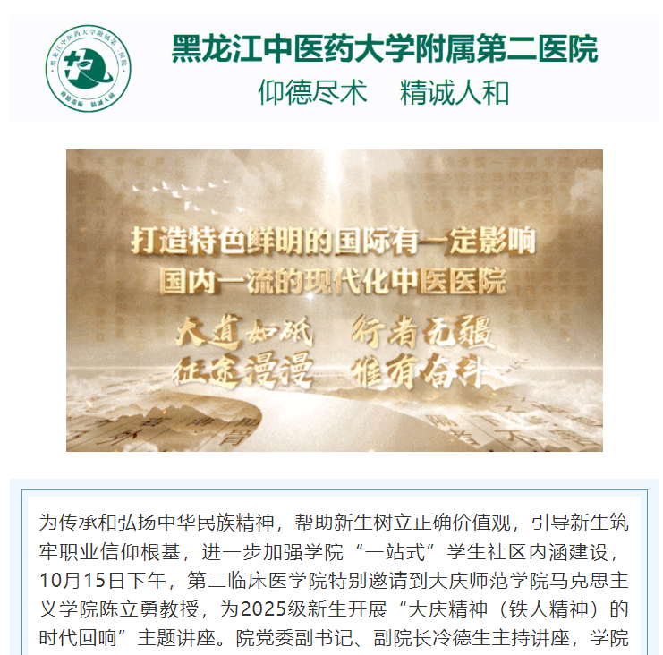 陈立勇教授为黑龙江中医药大学第二临床医学院作“大庆精神(铁人精神)的时代回响”主题讲座
