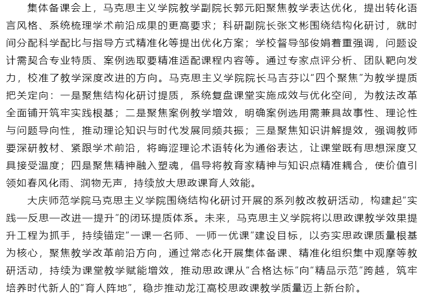 大庆师范学院锚定深化教学改革新方向以结构化研讨赋能思政小课堂提质增效