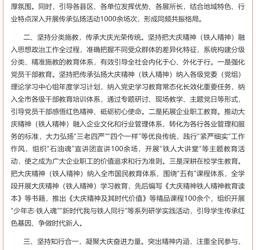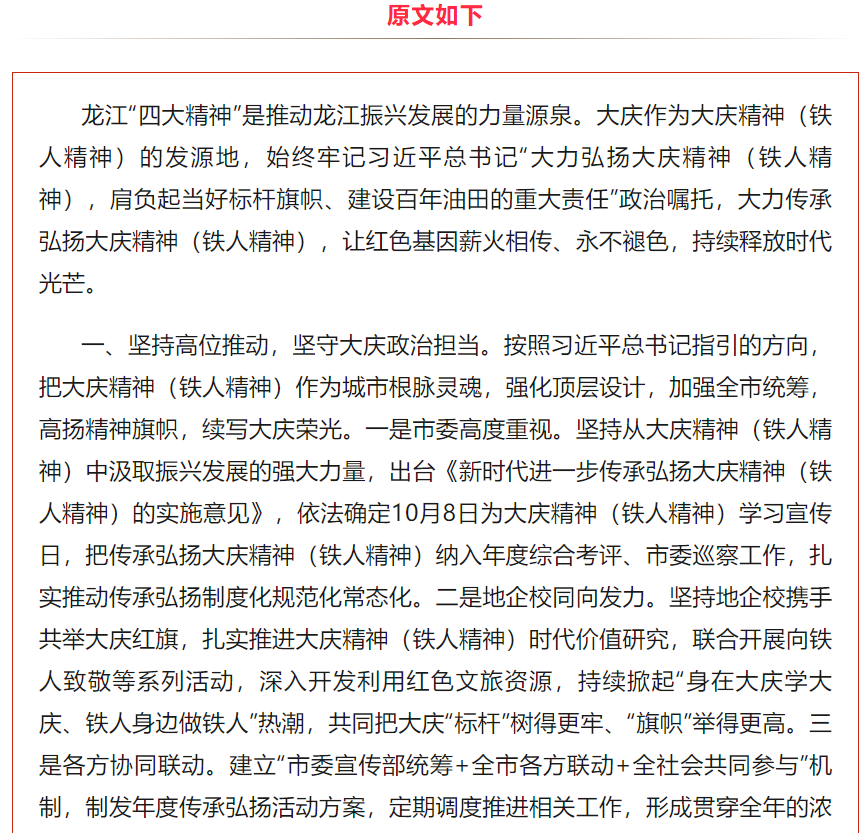 让大庆精神(铁人精神)持续释放时代光芒