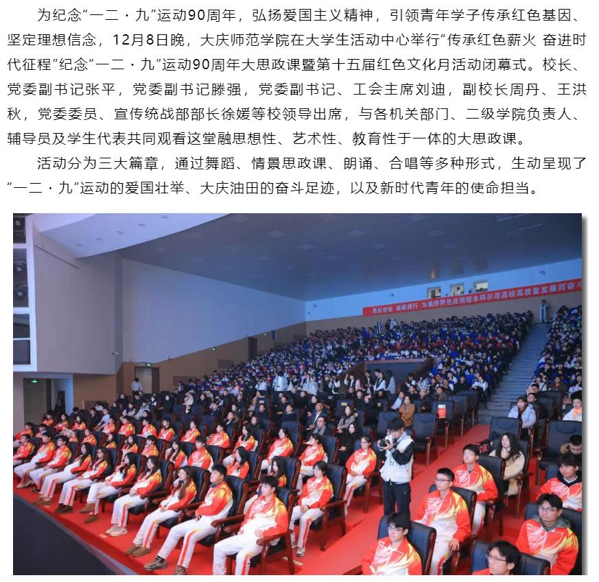 传承红色薪火 奋进时代征程|大庆师范学院举行纪念“一二・九”运动90周年大思政课暨第十五届红色文化月活动闭幕式